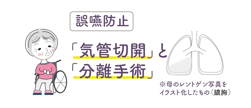 母が膿胸だと診断され、徐々に回復傾向がみられたときに、医師から「気管切開」と「分離手術」の提案を受けました。